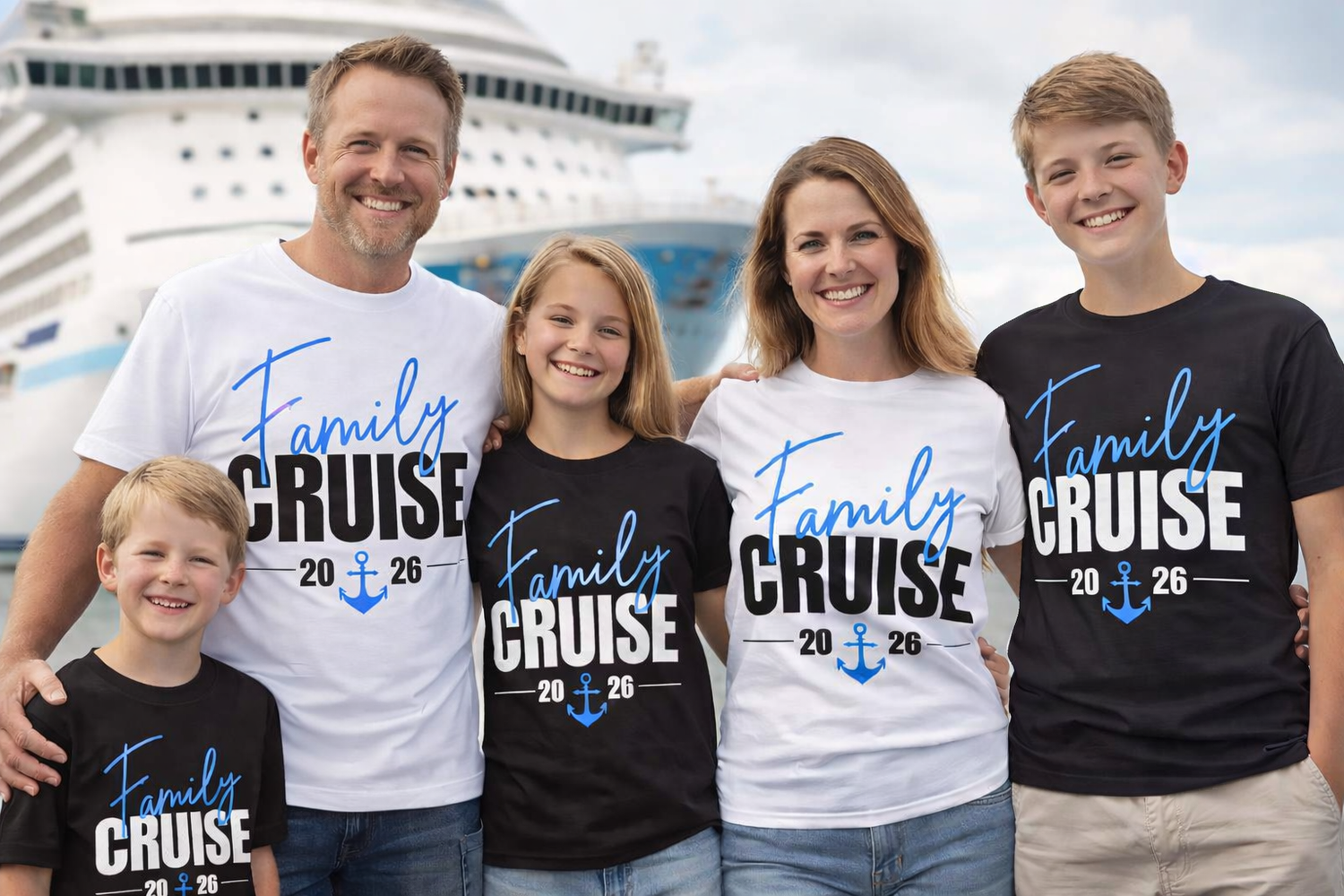 Perfect for family trips, group holidays or special celebrations, these matching tees make unforgettable memories from port to poolside.